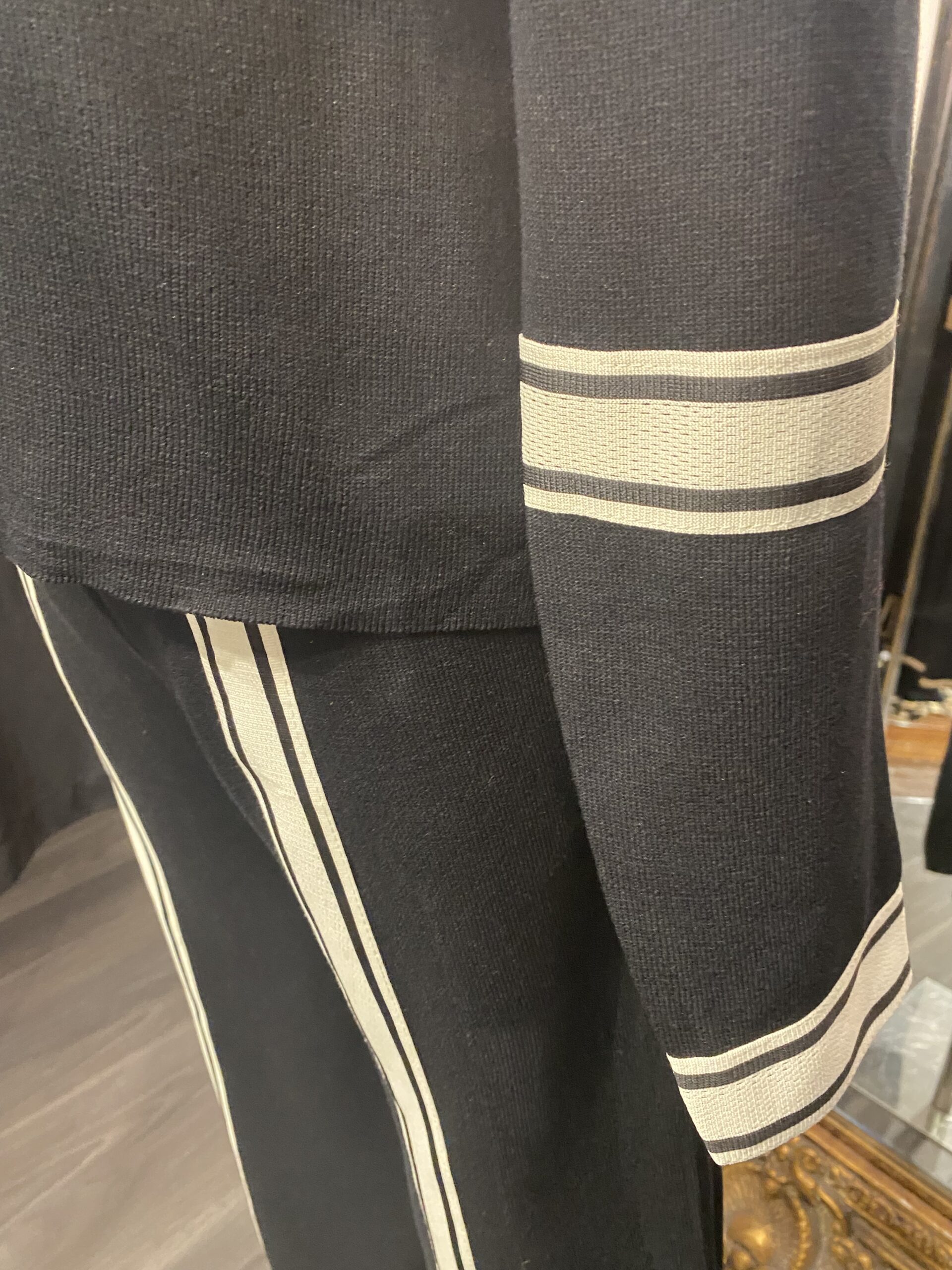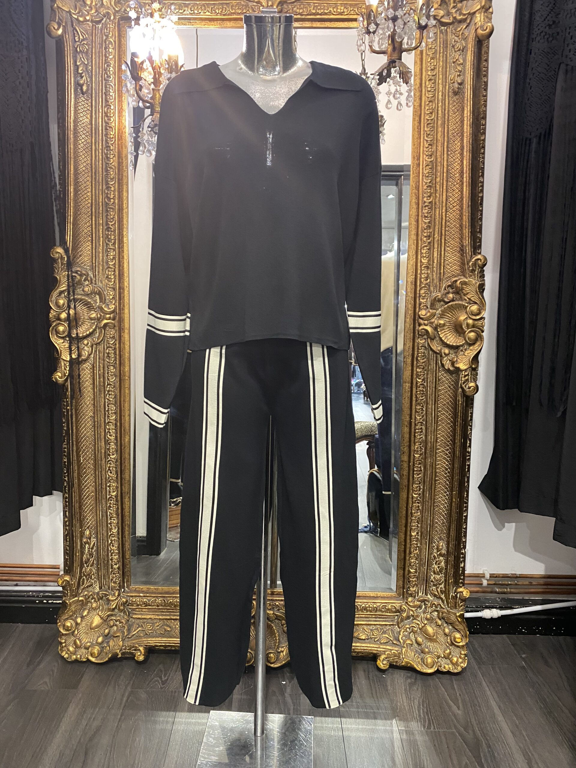 Black & Cream Striped Leg & Sleave Knitted Lounge Suit With Collar quantity