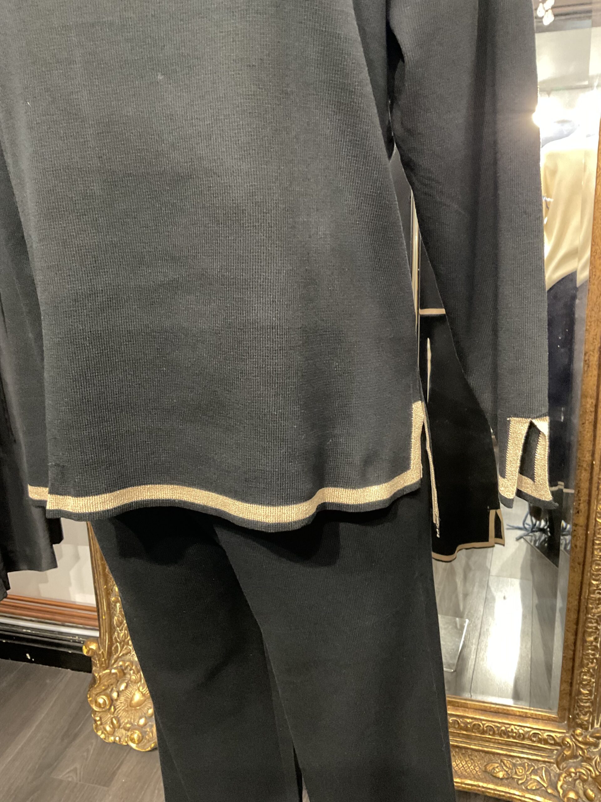 Black Knitted Lounge Suit With Gold Trim Detail