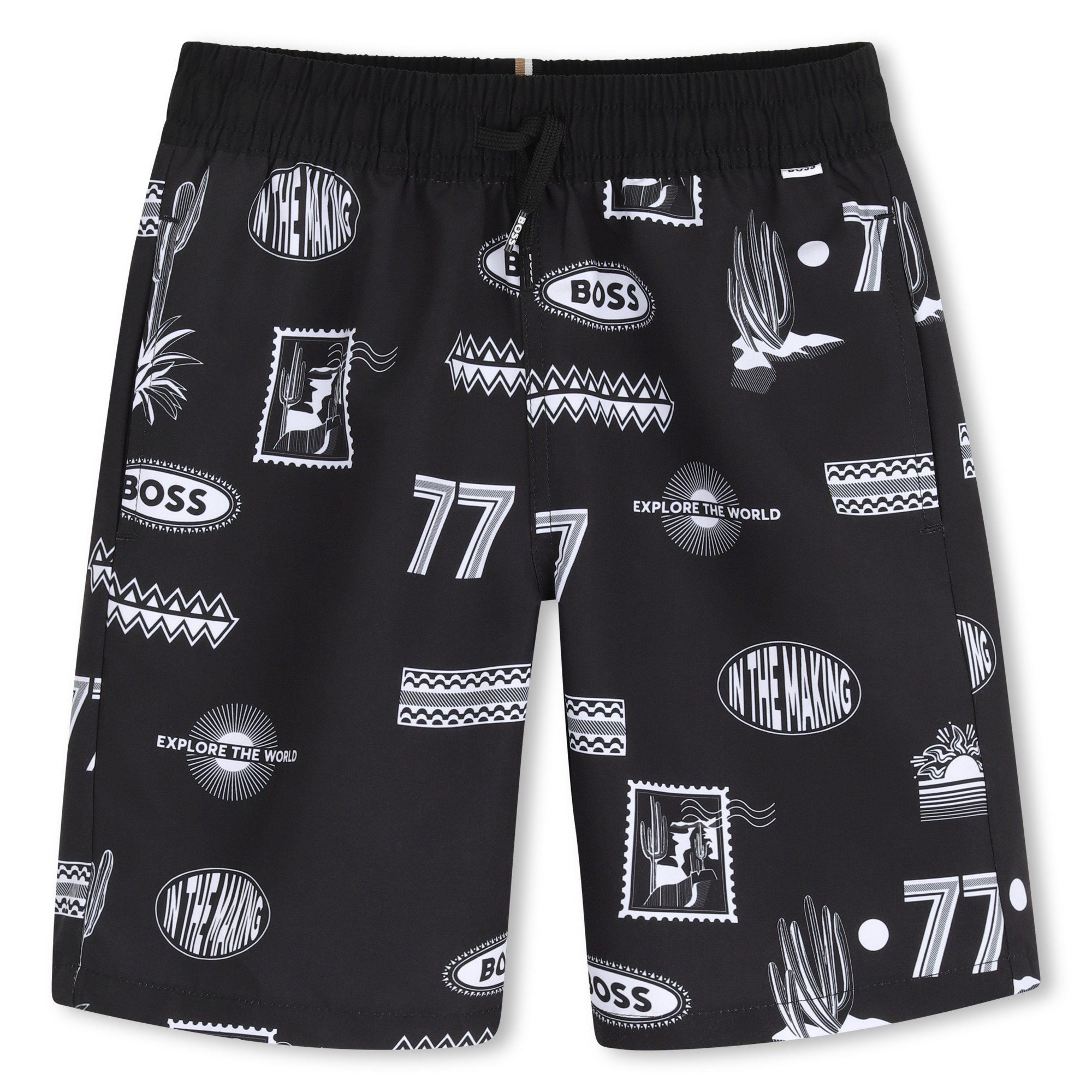 Boss Black & White Patterned Swim Shorts