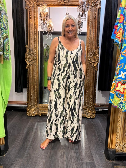 Ladies Green Patterned Maxi Dress