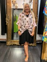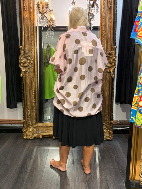 Ladies Pink & Brown Spot Shirt. Lovely tied and worn over a dress. Can be worn open over a vest or buttoned up.