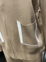 Stone Knitted Lounge Suit With Hood, Pockets & Cream Trim quantity